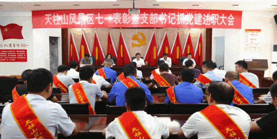 6月28日,天柱山风景区召开纪念中国共产党成立98周年七一表彰大会暨支部书记抓党建述职大会,市委常委、天柱山风景区党委副书记、天管会副主任涂高生,天柱山风景区党委委员、天管会副主任王晨东,天柱山风景区党委委员、风景区纪委书记江霞出席会议,风景区党委班子成员,党委表彰的先进基层党组织代表,优秀共产党员,优秀党务工作者,旅游公司党总支、各党支部班子成员,机关全体党员参加会议。