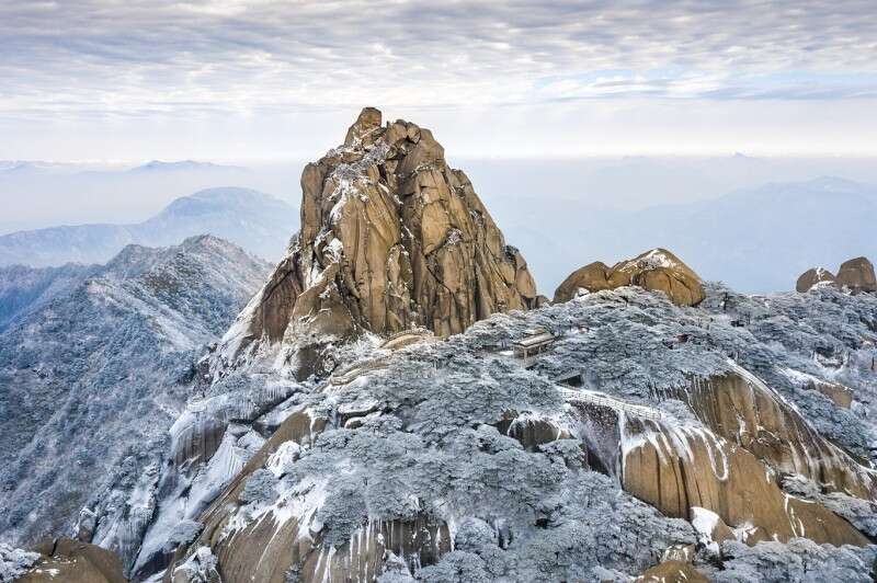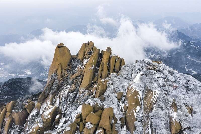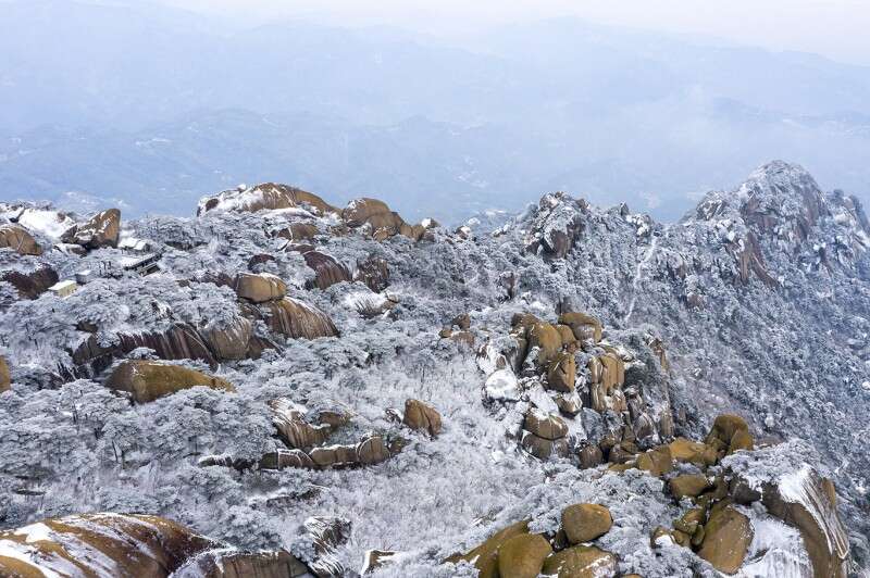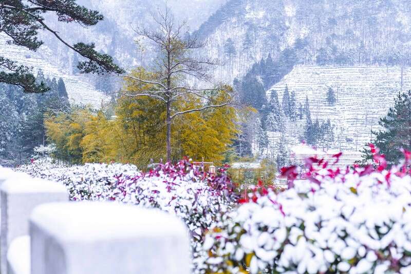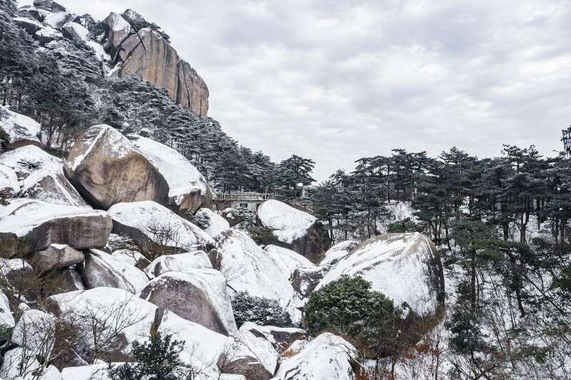 受冷空气影响,2020年12月14号,安徽潜山天柱山迎来降雪,漫山遍野,银装素裹,宛如冰雪梦幻世界。