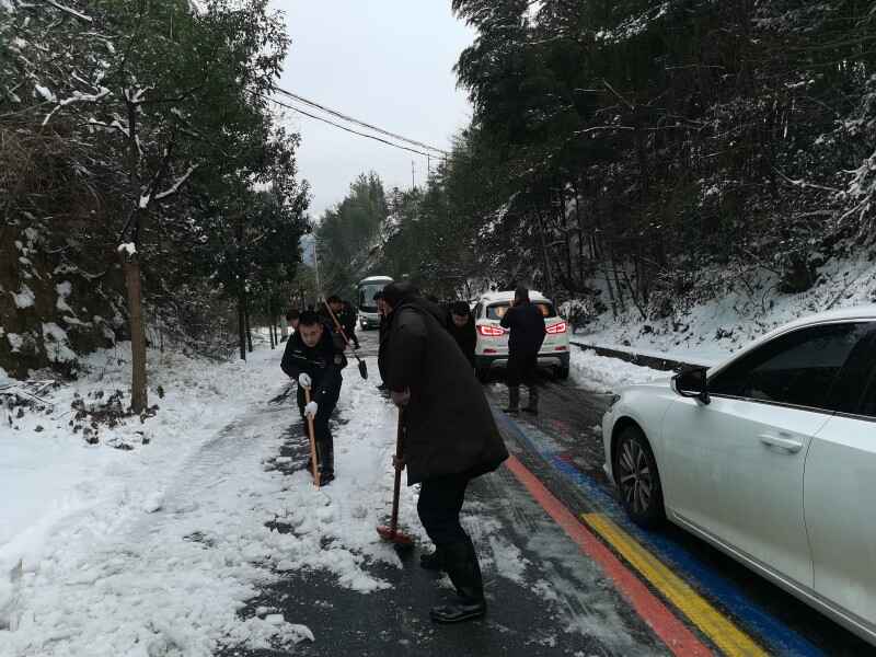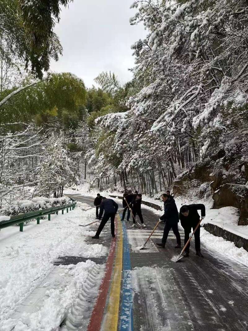 2月7日、8日,在风景区纪检监察工委书记江霞和旅游公司领导班子的带领下,天柱山人化身铲雪小分队,在城区包保网格南岳路段、景区通景公路、索道公司、天柱山庄等经营场所同时开展冰雪大作战。